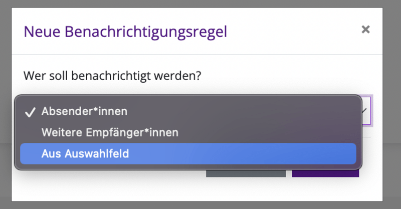 Die Benachrichtigungsmail wird dann wie alle anderen Mails als "Benachrichtigungsregel" erstellt.