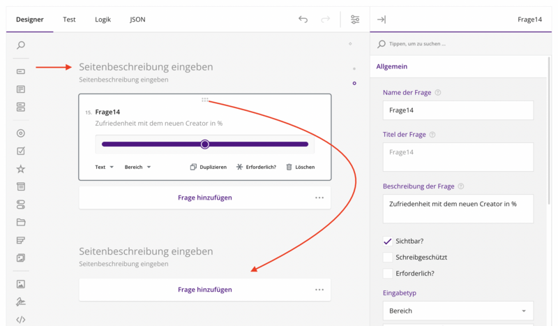 - Felder lassen sich nun bequem in andere Seiten des Formulars schieben, da neue Seiten eines Formulars nicht mehr als "Tabs" oben angelegt werden sondern untereinander liegen