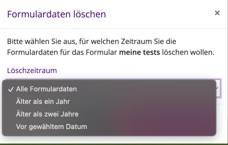 Für Formulare, die Datensätze enthalten, die älter als ein Jahre sind, wird künftig ein Datenschutzhinweis angezeigt. Hier werden Formulareigentümer:innen darauf aufmerksam gemacht, dass sie diese Datensätze entfernen sollten.